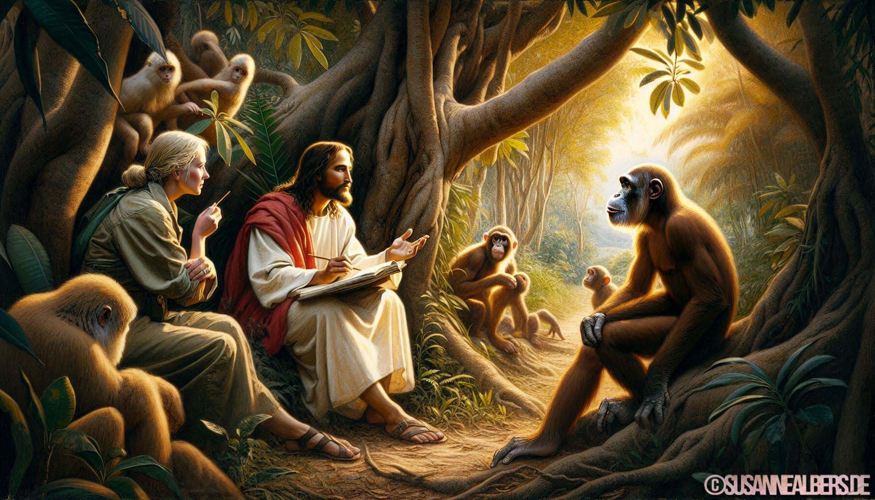 Galerie für KI-Bilder - Kunst und Inspiration >> albums >> -jesus-und-jane-goodall-im-gespraech
