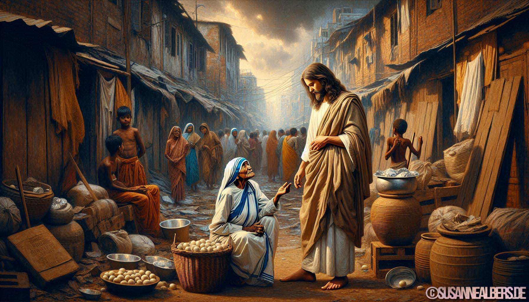 Galerie für KI-Bilder - Kunst und Inspiration >> albums >> -jesus-und-mutter-teresa-im-gespraech