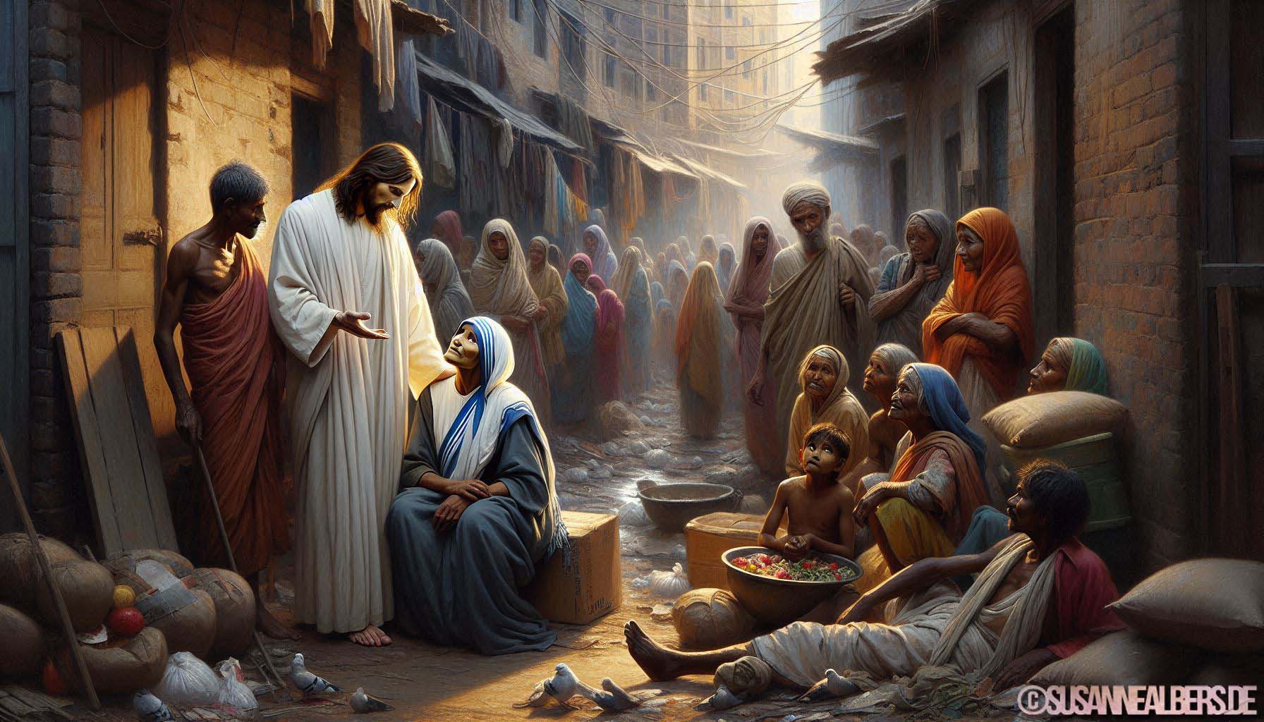 Galerie für KI-Bilder - Kunst und Inspiration >> albums >> -jesus-und-mutter-teresa-im-gespraech