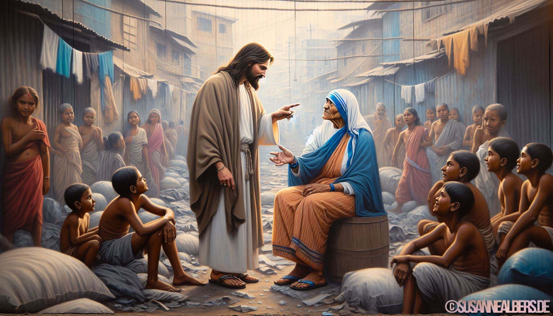 Galerie für KI-Bilder - Kunst und Inspiration >> albums >> -jesus-und-mutter-teresa-im-gespraech