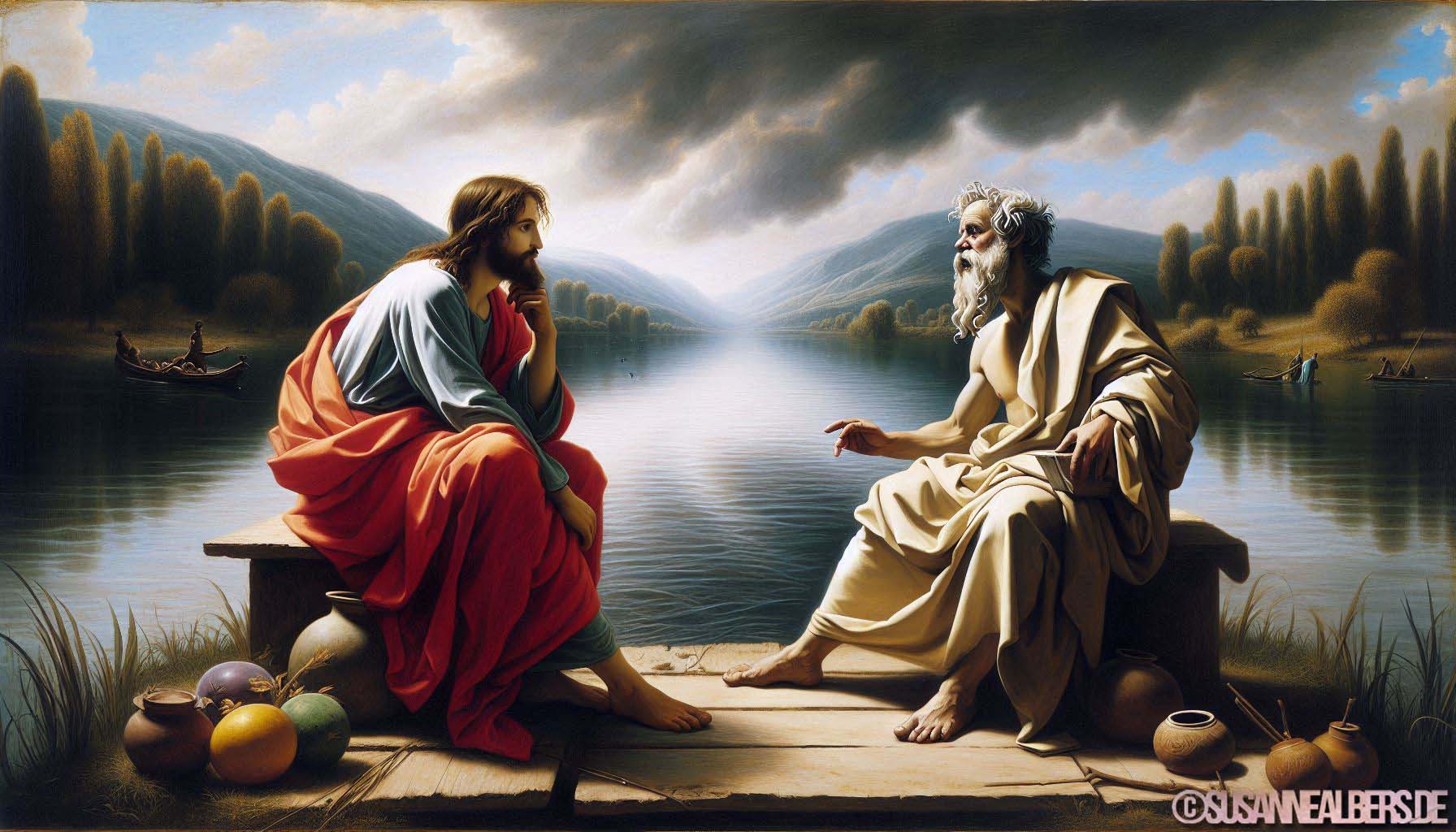 Galerie für KI-Bilder - Kunst und Inspiration >> albums >> -jesus-und-sokrates-im-gespraech