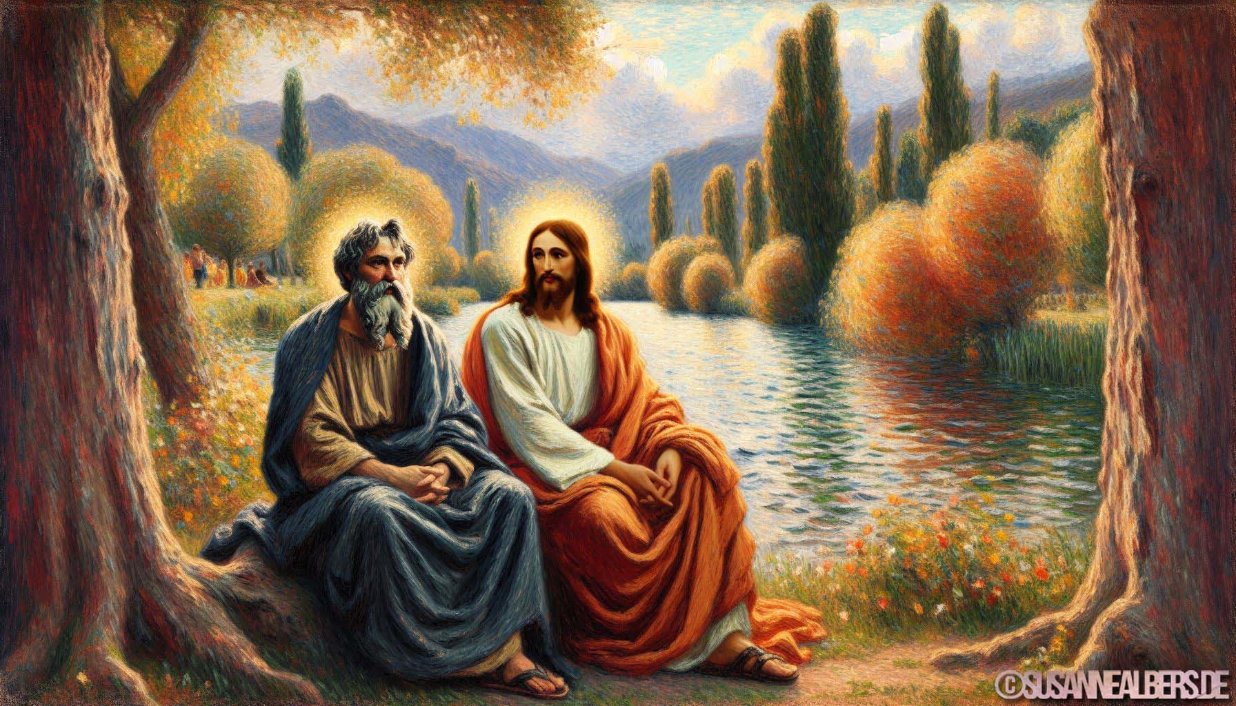 Galerie für KI-Bilder - Kunst und Inspiration >> albums >> -jesus-und-sokrates-im-gespraech