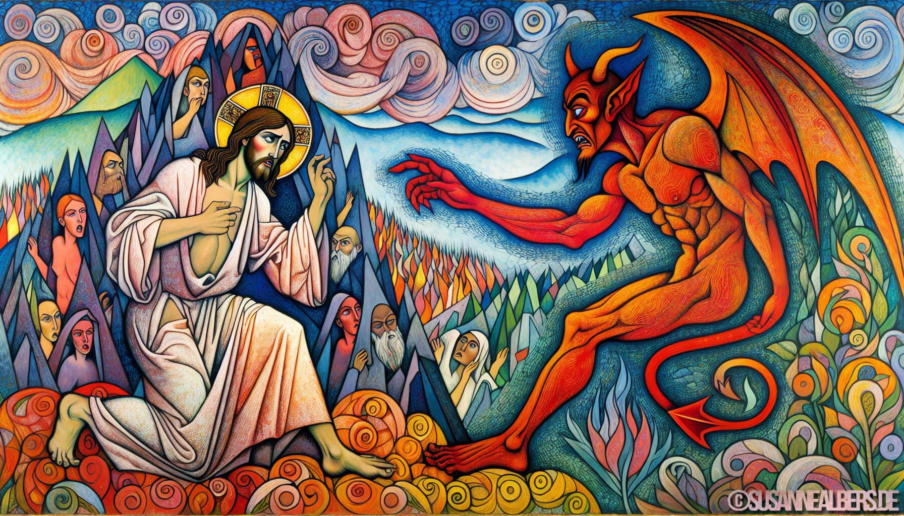 Galerie für KI-Bilder - Kunst und Inspiration >> albums >> -jesus-widersteht-verlockungen-des-teufels
