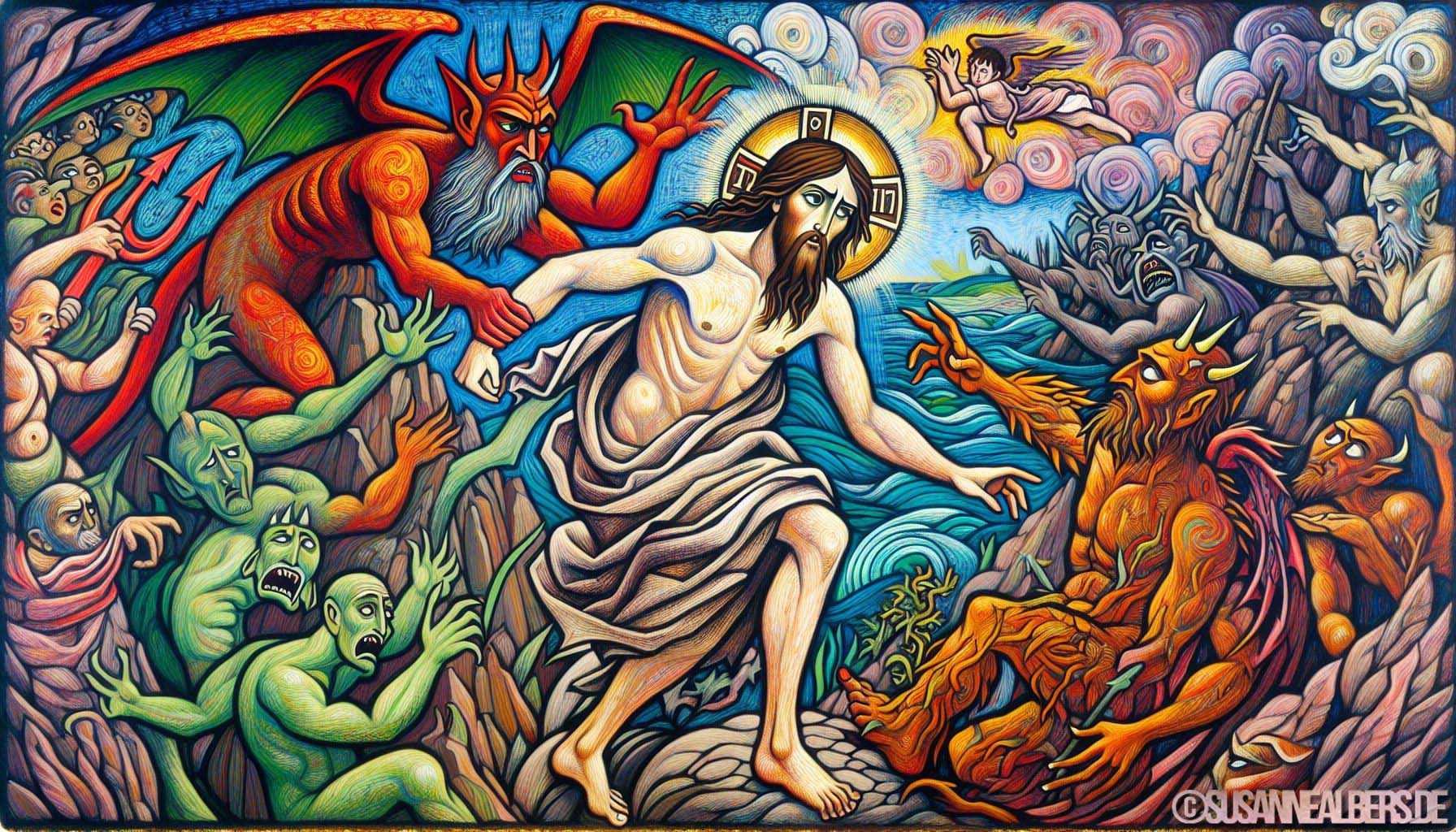 Galerie für KI-Bilder - Kunst und Inspiration >> albums >> -jesus-widersteht-verlockungen-des-teufels
