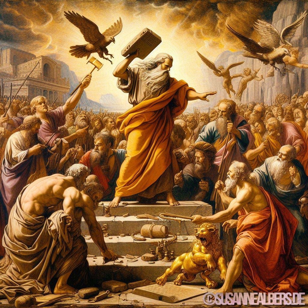 Galerie für KI-Bilder - Kunst und Inspiration >> albums >> -mose-zerbricht-gesetzestafeln-goldes-kalb