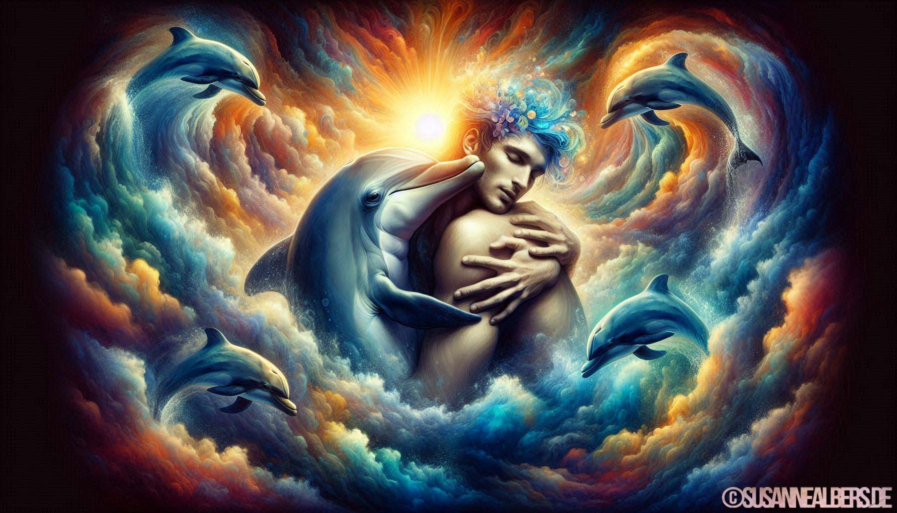 Galerie für KI-Bilder - Kunst und Inspiration >> albums >> -mystisches-gefuehl-delphin-umarmen