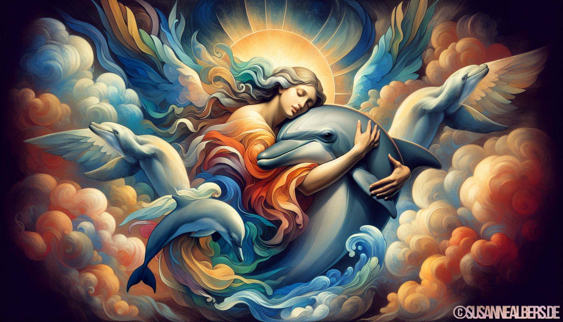 Galerie für KI-Bilder - Kunst und Inspiration >> albums >> -mystisches-gefuehl-delphin-umarmen