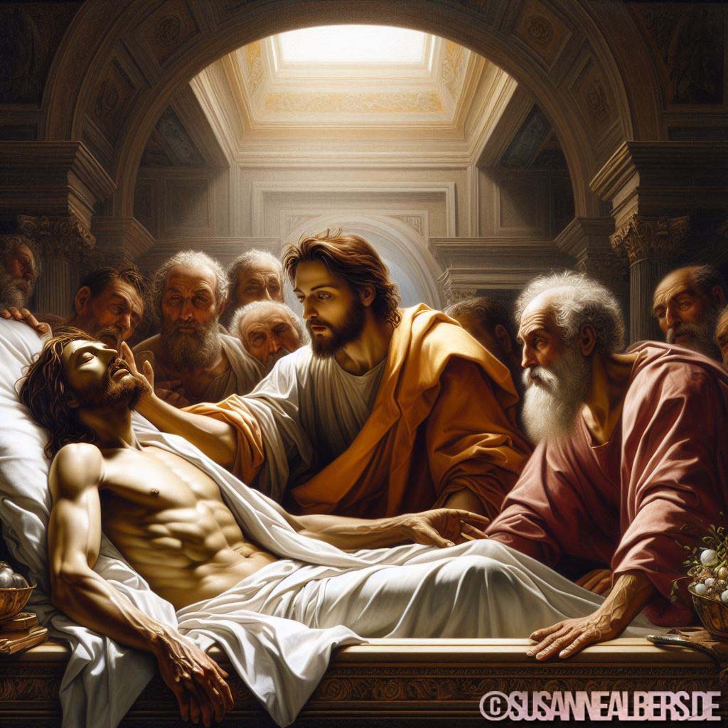 Galerie für KI-Bilder - Kunst und Inspiration >> albums >> -unglaeubiger-thomas-prueft-auferstandenen-jesus