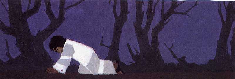 Jesus geht tiefer in den Garten hinein.