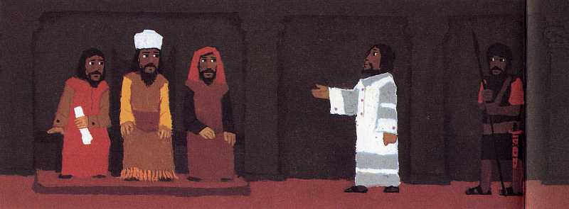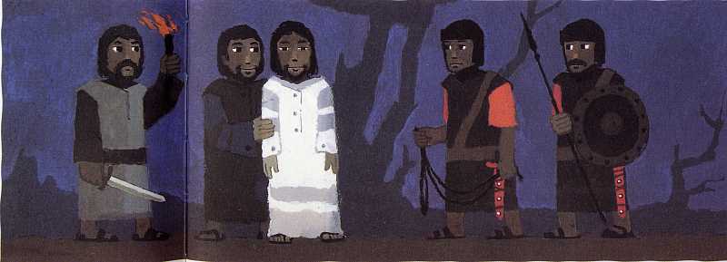 Sie bringen Jesus zum Obersten Priester.