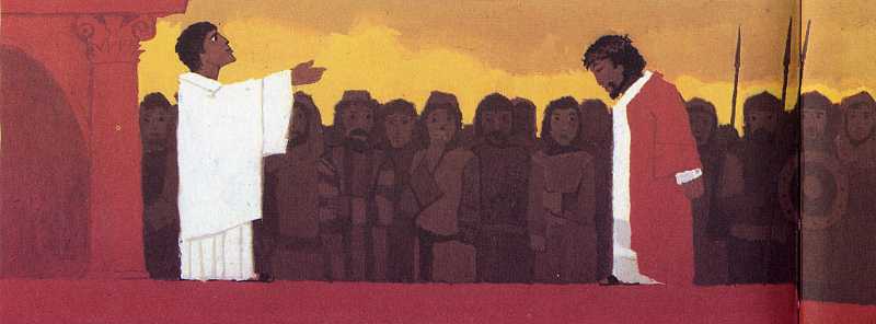 Sie bringen Jesus zum römischen Statthalter.