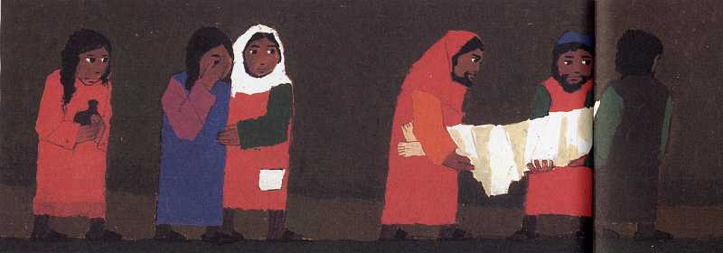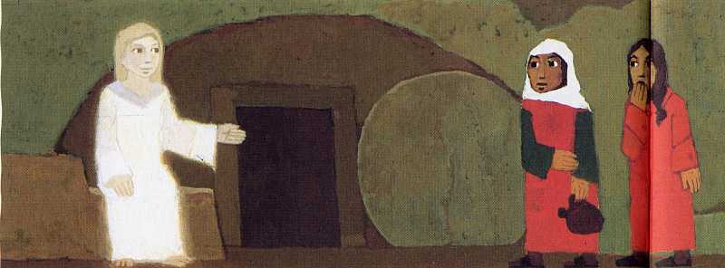 herausgegeben 1994 von der Deutschen Bibelgesellschaft Stuttgart 25 Jesus ist auferstanden Die Geschichte von Jesu Leiden, Sterben und Auferstehung ist vielen Menschen bei uns vertraut. Kein anderes Thema ist in der christlichen Kunst so oft dargestellt worden. Durch die Passionen J.S.Bachs lebt die Leidensgeschichte im Bewußtsein zahlreicher Menschen. So werden Erwachsene kaum Schwierigkeiten haben, die stark getraffte Bildfolge zu verstehen und mögliche Fragen der Kinder zu beantworten. Mancher vermißt vielleicht bekannte Szenen wie die Verleugnung des Petrus oder die beiden mitgekreuzigten Schächer. Warum sollte man das nicht den Kindern zusätzlich erzählen? Gewisse Fragen werden allerdings auch für den, der die biblischen Berichte in vollem Umfang kennt, ohne Antwort bleiben. Was veranlaßt Judas zu seinem Verrat? Warum wollen die führenden Kreise Jesus beseitigen? In der Bibel gibt es dazu Hinweise (z.B. Lukas 22,3-6; Matthäus 27,18; Markus 3,1-6 und 11,15-18; Johannes 11,46-53). Aber sie reichen nicht aus, um unsere Neugier zu befriedigen und ein lückenloses Protokoll der Vorgänge zu erstellen. Insbesondere erlauben die überlieferten Angaben nicht, den "Prozeß Jesu" noch einmal aufzurollen. Wer trägt die Hauptschuld an Jesu Tod, die Juden oder die Römer? Es ist ein trauriges Kapitel, daß Christen im Lauf der Jahrhunderte immer wieder der Versuchung erlegen sind, aufgrund der Kreuzigung Jesu die Juden in ihrer Gesamtheit als "Gottesmörder" zu diffamieren und zu verfolgen. "Sein Blut komme über uns und unsere Kinder", so ruft zwar nach MAtthäus 27,25 die aufgeputschte Menge vor Pilatus. Aber das ist im Grunde vor und zu Gott gesprochen und gibt keinem Menschen das Recht, sich selber das Rächeramt anzumaßen. Gibt es hier überhaupt etwas zu rächen? Christen haben seit je die Passion Jesu so begleitet, daß sie fühlten: Wir haben hier niemand zu verurteilen. Was Jesus ans Kruez gebracht hat, ist die Schuldenlast der Welt, an der wir teilhaben. Wir werden deshalb die Geschichte von Jesu Leiden und Sterben nur recht verstehen, wenn wir uns selber mit unter das Kreuz stellen und mit Paul Gerhard sprechen: "Nun, was du, Herr, erduldet, ist alles meine Last; ich hab' es selbst verschuldet, was du getragen hast." Können wir den Kindern wenigstens ansatzweise diese Sicht nahebringen? Das Bild, das den sterbenden Jesus zeigt, könnte dazu anregen: Es war der Wille des himmlischen Vaters, daß Jesus für alle Menschen starb. Die Kinder sollten die Geschichte so erleben können, daß sie spüren: Jesus hat mich lieb. Er leidet für uns alle, auch für mich. Die zweite Hälfte des Bilderbuches spricht mehr als die erste für sich selbst. Jesus lebt: das kann man hier unmittelbar miterleben.
